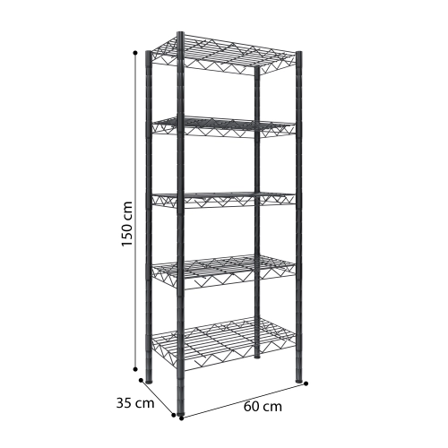 Scaffalatura 5 Ripiani Scaffale Portaoggetti In Acciaio Ideale Per Casa Cucina Garage Portata Massima 200 Kg Officina Cantina 150 x 60 x 35 Cm Colore Nero